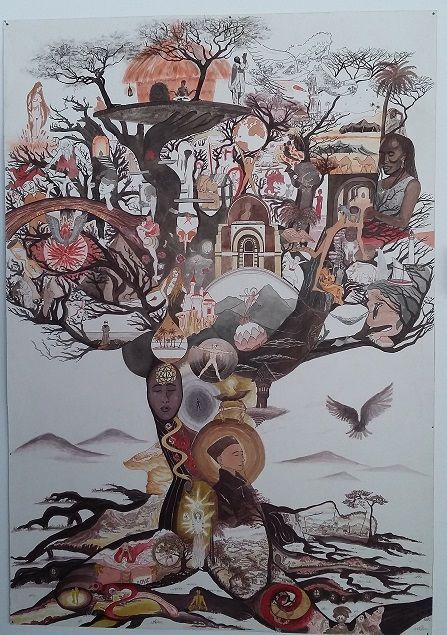 Dessin aux encres acryliques. 110 x 75 cm